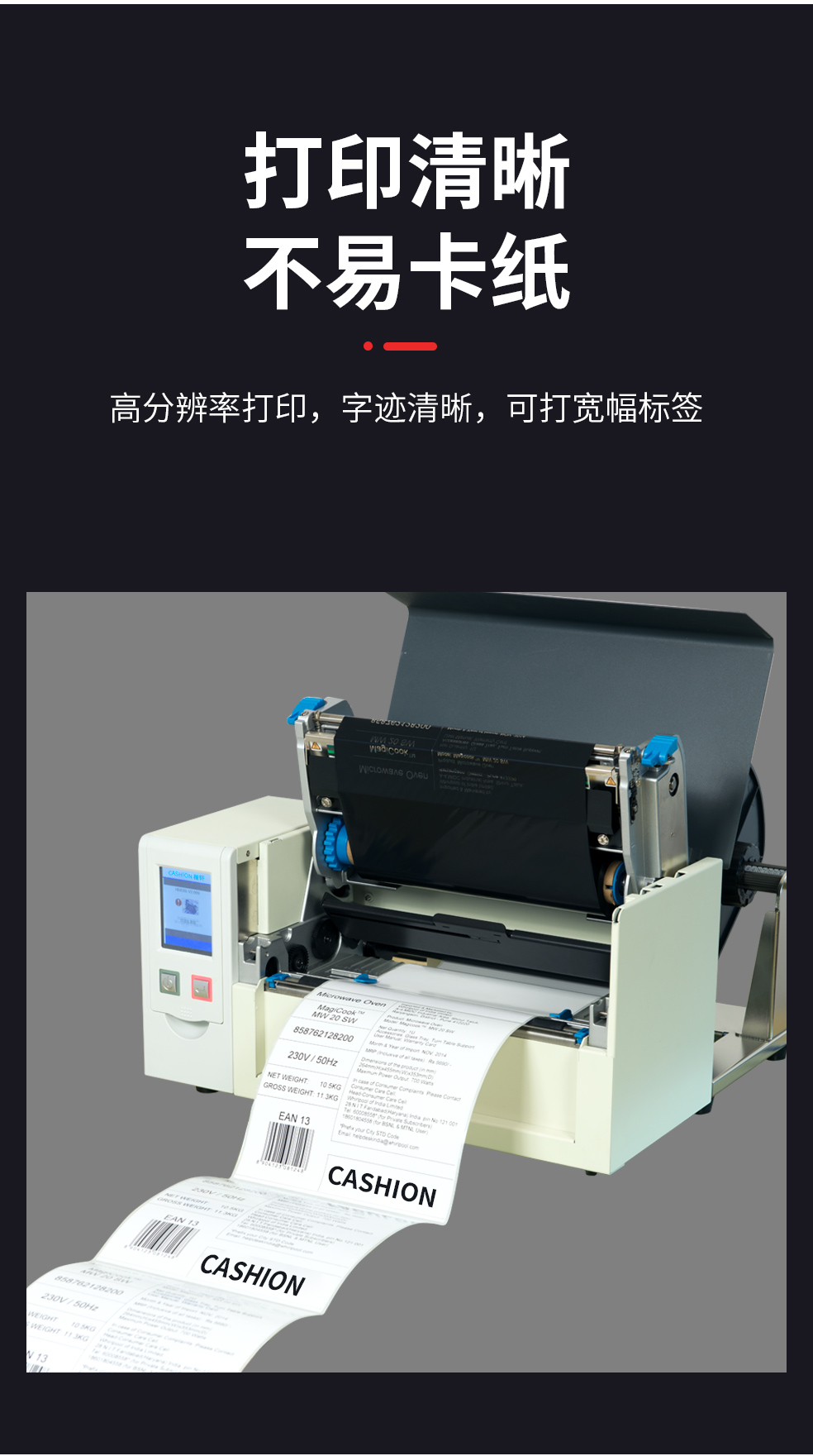 - 自動感測節(jié)省使用耗材的CASHION C-204條碼打印機